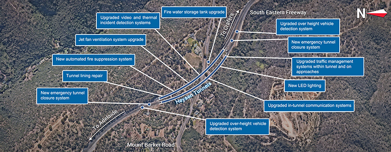 The Heysen Tunnels Refit and Safety Upgrade forms part of a broader South Eastern Freeway (SEF) Upgrade, funded by a combined $150 million from the state and federal governments.